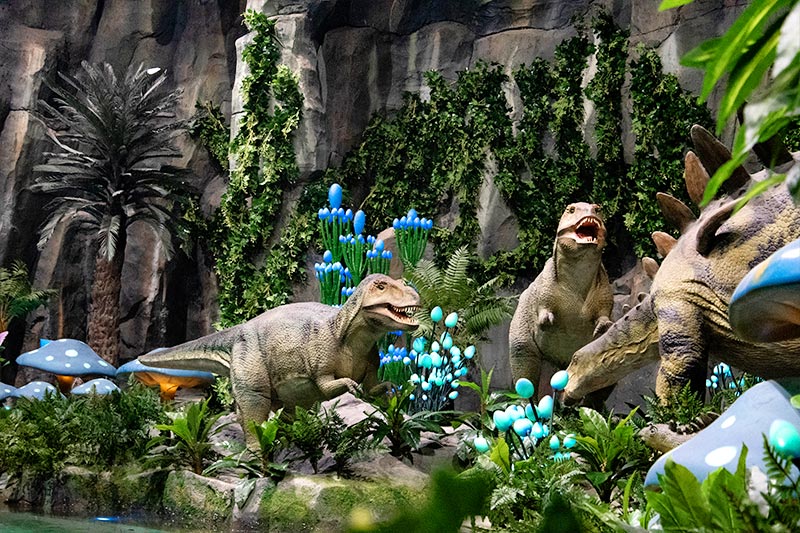 三大主題包括:恐龍世界、人龍部落、恐龍研究基地。