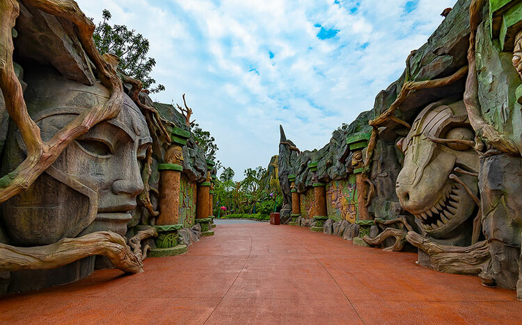 自貢方特恐龍王國占地約1429畝。包含自貢恐龍文化科技產(chǎn)業(yè)園(占地約858畝)、自貢恐龍旅游綜合服務(wù)中心(即入口廣場,占地約144畝)及配套基礎(chǔ)設(shè)施建設(shè)(占地約427畝),總投資約78.62億元。 園區(qū)由“一個故事、三大主題及五大主題分區(qū)、十三個項(xiàng)目”的整體創(chuàng)意思路組成。
