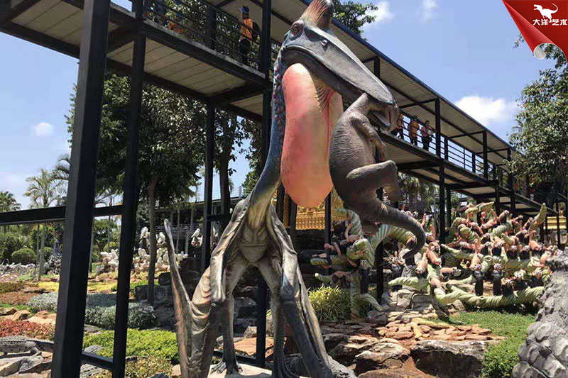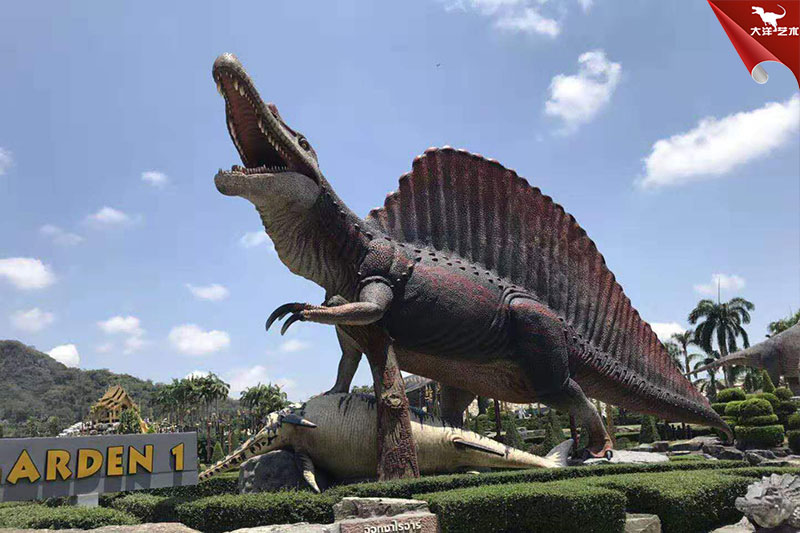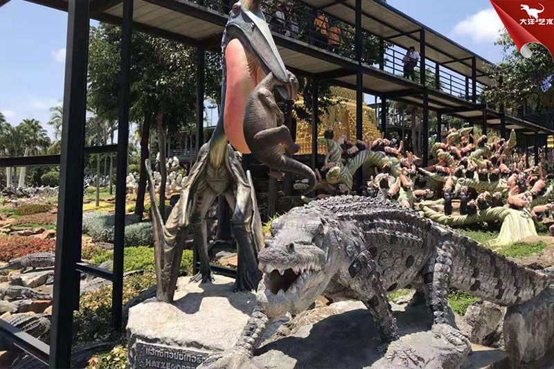 該批次恐龍雕塑展品,為自貢大洋藝術(shù)仿真恐龍制作工廠為泰國一恐龍主題公園定制的。在當?shù)匚芏鄧鴥?nèi)外游客參觀。
