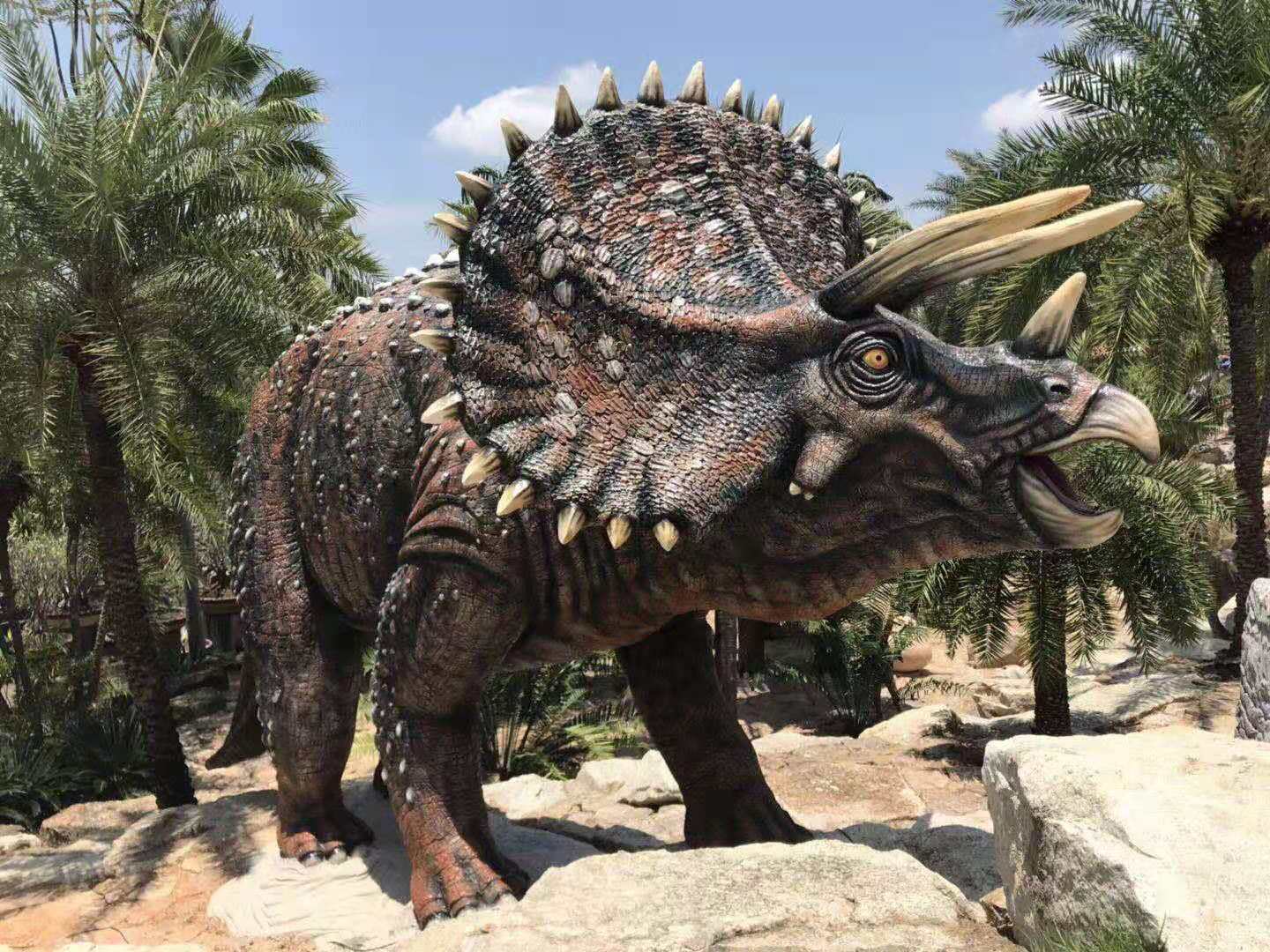 4. 野牛龍(愛(ài)氏角龍)野牛龍生活在白堊紀(jì)晚期,大約6 米長(zhǎng)、1米高,頭部有三只大角,脖子上有一個(gè)大頸盾,邊緣有齒狀骨質(zhì)突起。它是由山普森(Sampson)在1994年發(fā)現(xiàn)的三個(gè)頭骨化石命名的。像其它角龍一樣,它在獸群中穿行,有牙齒,能咀嚼最硬的植物.