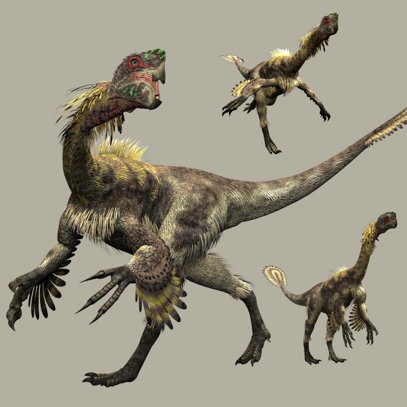 這只世界上所發(fā)現(xiàn)的第一只長(zhǎng)有絨狀細(xì)毛的恐龍,被命名為原始中華龍鳥(niǎo),是一種介于恐龍與鳥(niǎo)類之間的過(guò)渡型生物,可能代表了鳥(niǎo)類起源和演化的祖先類型。它擁有一個(gè)大頭顱,樣子與雞相近,前肢短小,后肢長(zhǎng)而粗壯;嘴里的銳利牙齒,說(shuō)明它是一只活躍的掠食者。除了長(zhǎng)毛以外,它那條由多達(dá)58節(jié)尾椎骨所組成的特長(zhǎng)尾巴,也是一個(gè)重要的特征。它生活在中國(guó)的白堊紀(jì)早期,以蜥蜴為生。
