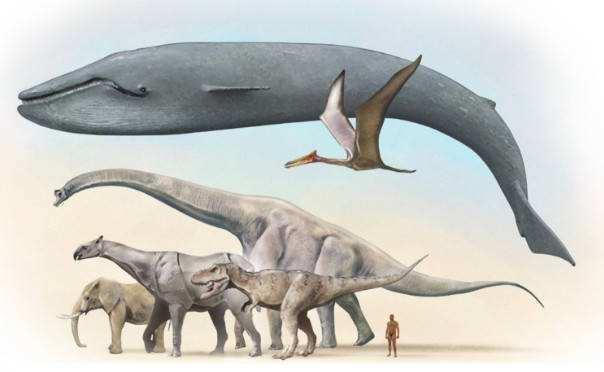 藍鯨最大體重可達180噸,而最大的陸生恐龍都沒有完整的骨骼化石,在我小的時候恐龍科普書中最大的恐龍阿根廷龍,只有1987年在南美洲發(fā)現(xiàn)的一些長2米, 寬1.5米, 重達1噸的脊椎骨,據(jù)此估算阿根廷龍體長約在30~40米之間,最大體重大約有80噸。