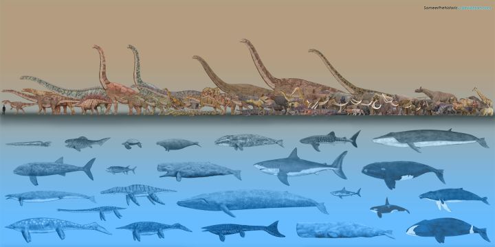就像當(dāng)年蜥腳類恐龍那樣迅速巨大化,藍(lán)鯨找到了比蜥腳類恐龍更加高效率的生存方式,甚至低效的呼吸系統(tǒng)都不會(huì)成為瓶頸。