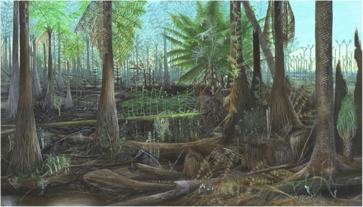 3億年前的地球,植物剛剛從海洋走上陸地,演化出了木質(zhì)化的維管組織,不僅能實(shí)現(xiàn)水分與營養(yǎng)物質(zhì)的運(yùn)輸,也起到了一定的支持作用。