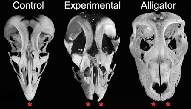 改造后的雞胚胎頭骨吻部出現(xiàn)其祖先的特征