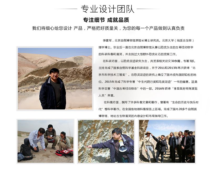 6.為了保證恐龍展品的效果,本公司特別聘請(qǐng)了中國科學(xué)院古脊椎研究所的教授和自貢恐龍博物館的恐龍專家作科學(xué)顧問,他們將會(huì)監(jiān)督恐龍展品制作的全過程 。