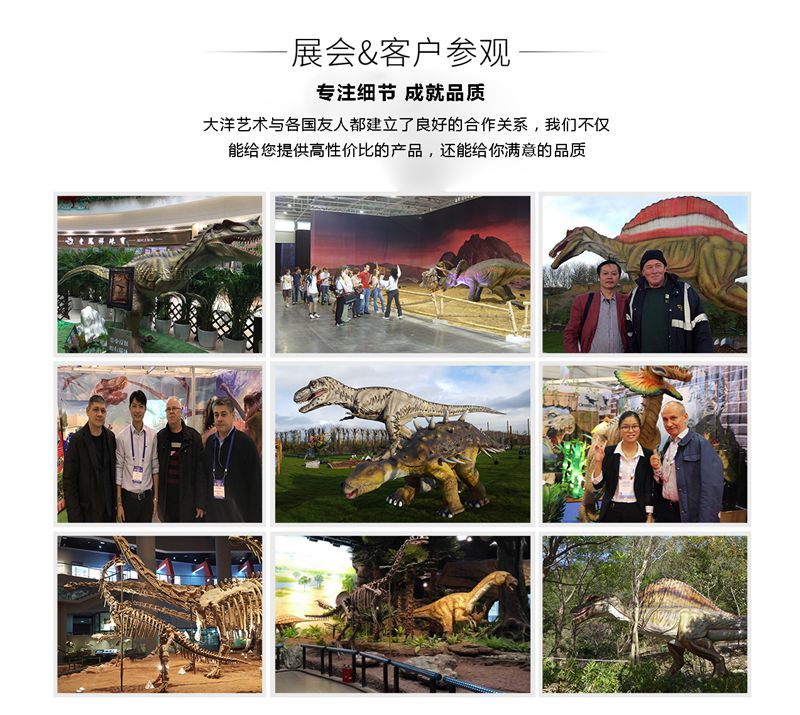 備注:我們所制作的仿真恐龍展品和骨架模型展品被中國科學(xué)院古脊椎所鑒定為“優(yōu)秀科研作品”被譽為”侏羅紀“的在現(xiàn)者。我們將秉承客戶至上的理念,為客戶設(shè)計和制造恐龍展品,并根據(jù)客戶的要求提供3年以上質(zhì)量保證,并長期為客戶提供培訓(xùn)安裝維修人員和配件等售后服務(wù),為顧客解除了恐龍展品長期使用展覽的后顧之憂。