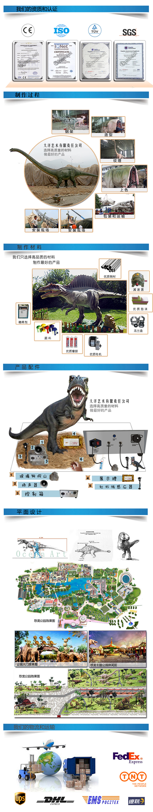 備注: 我們所制作的仿真恐龍展品和骨架模型展品被中國(guó)科學(xué)院古脊椎所鑒定為“優(yōu)秀科研作品”被譽(yù)為”侏羅紀(jì)“的在現(xiàn)者。我們將秉承客戶至上的理念,為客戶設(shè)計(jì)和制造恐龍展品,并根據(jù)客戶的要求提供3年以上質(zhì)量保證,并長(zhǎng)期為客戶提供培訓(xùn)安裝維修人員和配件等售后服務(wù),為顧客解除了恐龍展品長(zhǎng)期使用展覽的后顧之憂。