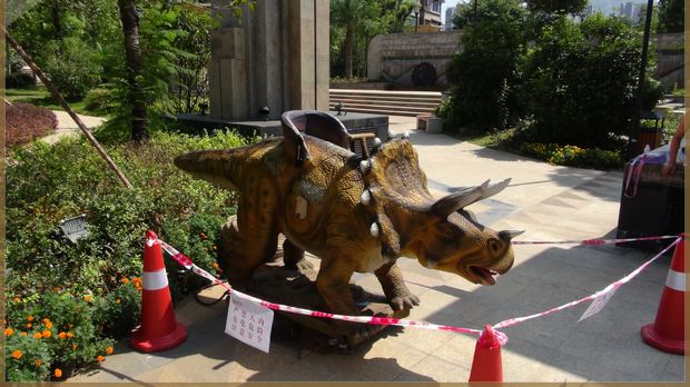 動 作:張嘴叫聲、頭左右、身前后,后退伸曲、前肢擺動、尾左右擺動。投幣后觀眾可騎坐隨龍搖動娛樂