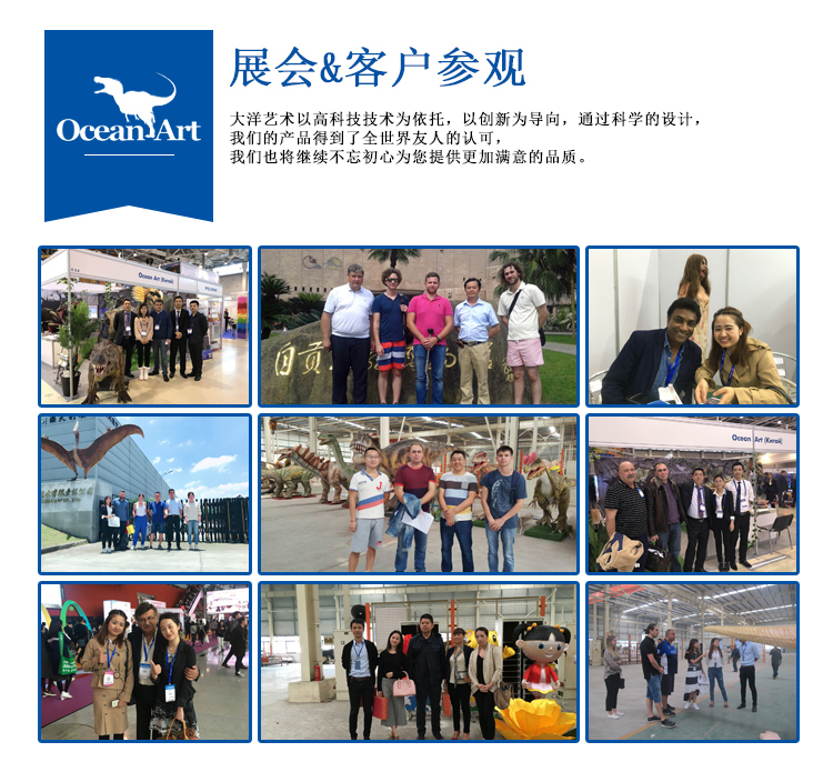 備注:我們注重展覽和產品本身的文化底蘊及科技含量,并且關注產品與觀眾的互動性、娛樂性和參與性,因此,我們先后推出了騎乘恐龍、打斗恐龍組、生蛋龍、蓋章恐龍、恐龍衣服等一系列,科技含量高,故事情節(jié)豐富,娛樂參與性極強的產品,深受廣大消費者的青睞。除了產品的研發(fā)與制造,公司的營銷核心是一套成熟的、創(chuàng)新性的展覽理念,并在海內外都取得了廣泛的成功!