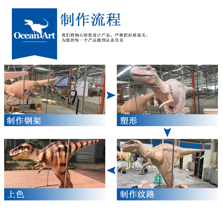 動 作:人穿在恐龍身體里面,控制恐龍動作